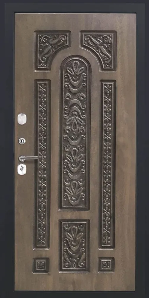 Дверь ДвериПРО Модель L-46 Д-19 (16мм, Грецкий орех + черная патина винорит) DPRO195586