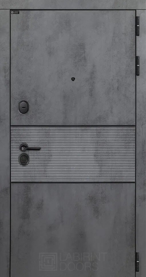 Современная MDF панель 10 мм с наличником, цвет "Бетон темный", вставка черный молдинг Покраска металла Шагрень черная