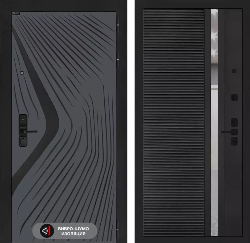 TOR XL черная: Врезная броненакладка, сувальдные накладки, ручка, ночная задвижка, цилиндр ключ-вертушка (производитель не регламентируется), глазок, эксцентрик.