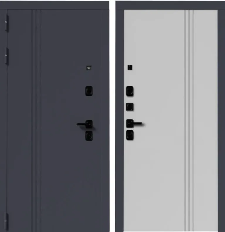 Ручка черная на квадратной планке раздельная стяжная; цилиндр ключ/вертушка, независимая ночная задвижка, глазок над замковой группой.